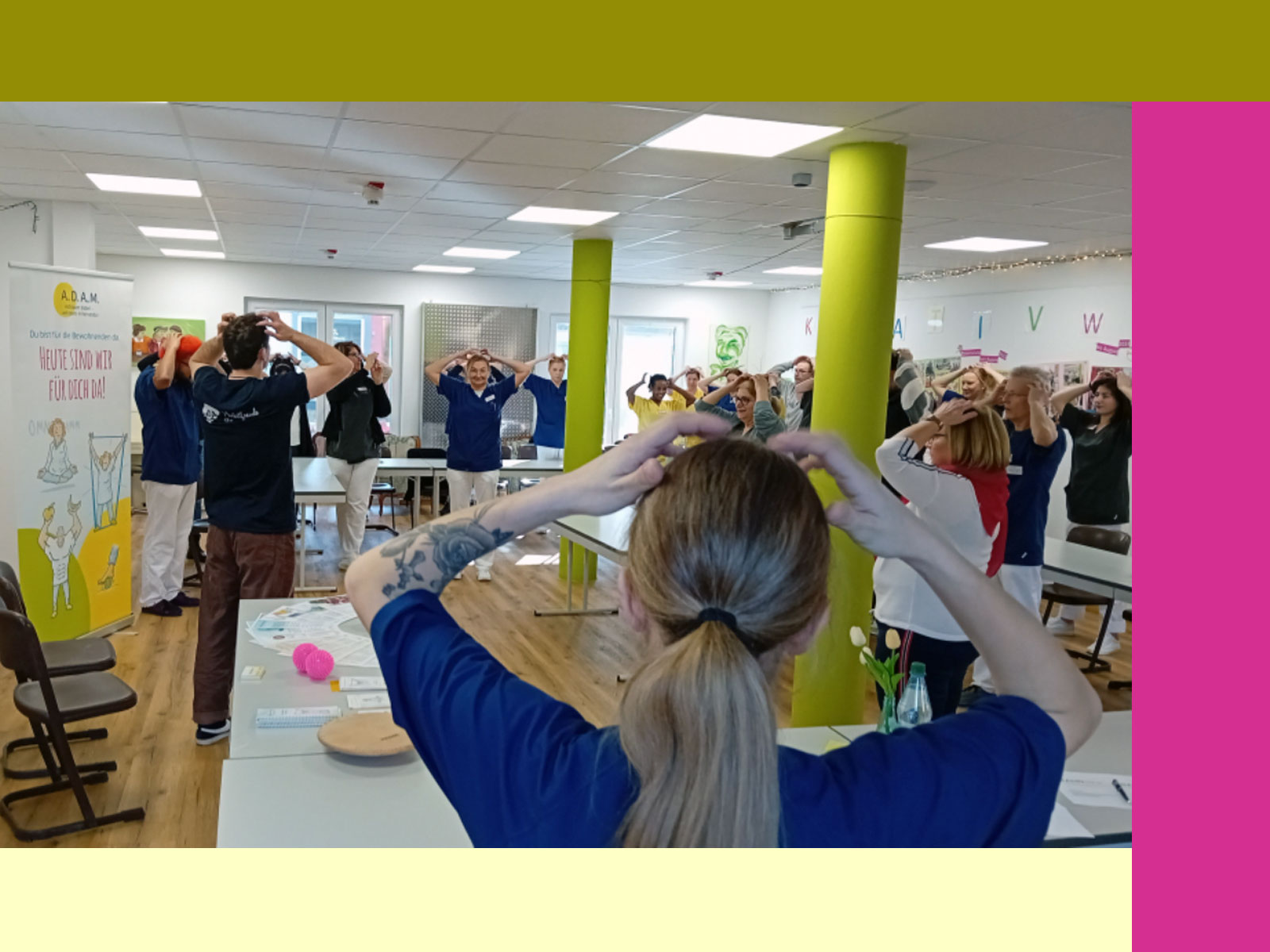 Das Besondere am A.D.A.M.-Projekt ist, dass es zwei Bereiche miteinander vereint, die oft nur getrennt angeboten werden - nämlich die Gesundheitsförderung in Bezug auf die Bewohner:innen und Mitarbeiter:innen.